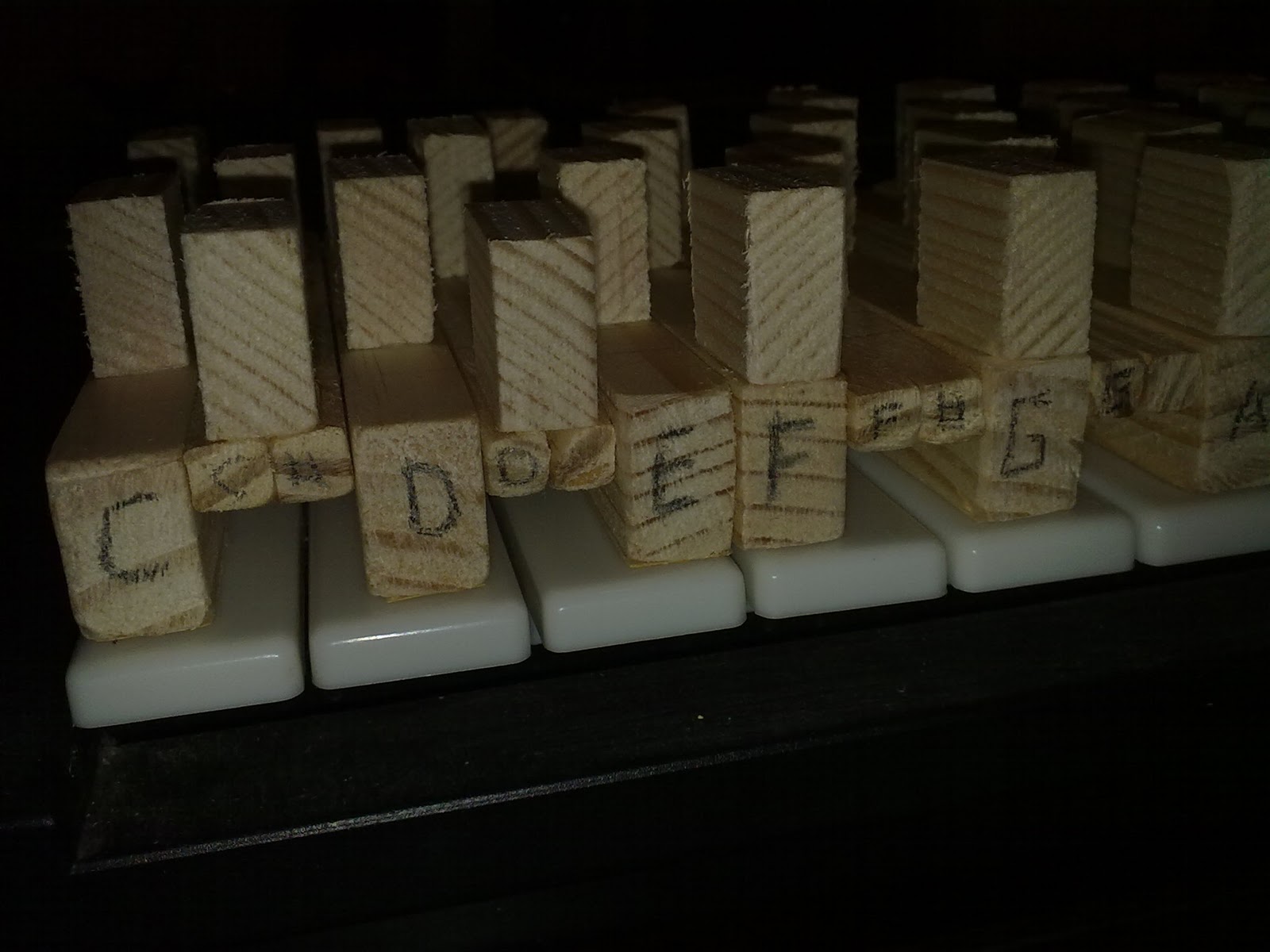 Unua paŝo: konverti normalan muzikan klavaron en alia kiu estu kromatika, per aldonado da piecetoj ĝis ununura surfaco.